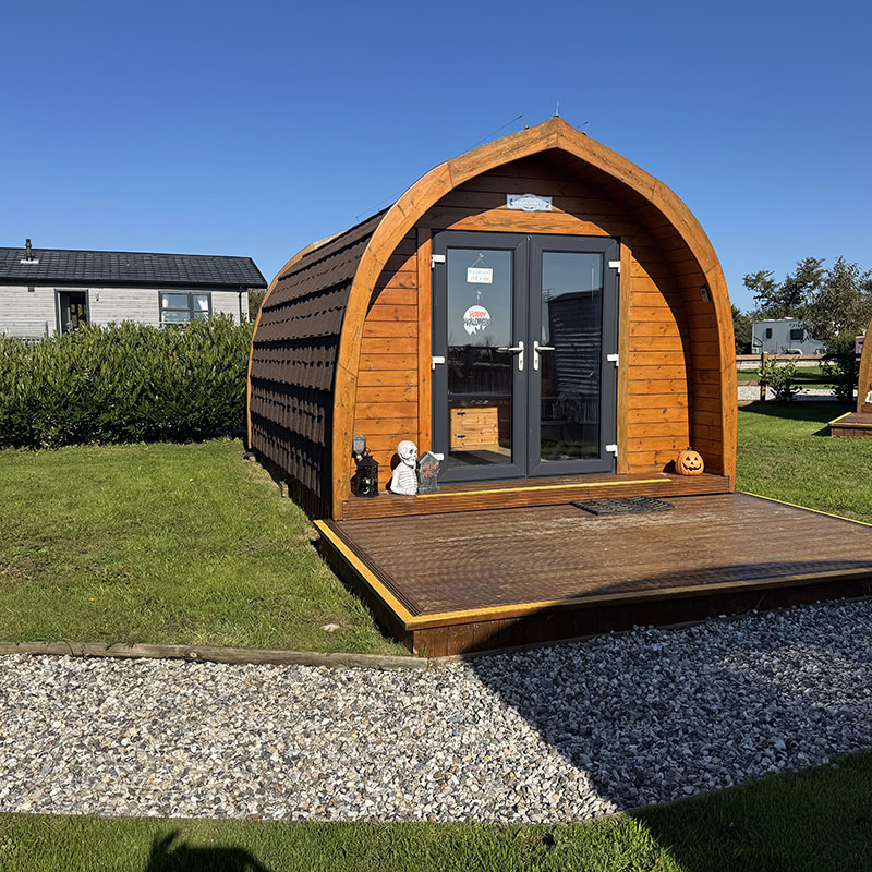 Go from camping to ‘Glamping’ with our eco-friendly family pod. Sleeping up to 4 (two adults and two small children) our Glamping Pod is equipped with one Double bed with Mattress and a sofa bed. Each pod has lighting, heating and double power sockets, kitchen unit, folding inside table and chairs, microwave, kettle, toaster and fridge plus an outside deck area with table and chairs. Well insulated, the pod also features lockable glazed doors and a small window for ventilation. Bring all your camping equipment but leave the tent at home! 12pm Check in. Please note: Pods are no smoking and Dogs are not permitted in this accommodation. (Bedding, Towels, Coffee and tea is not provided).